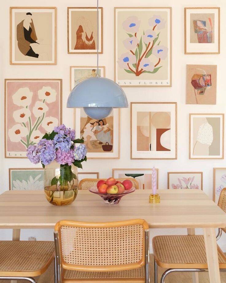 Le maximalisme bien pensé : L'accumulation peut être belle si elle est maitrisée. Par exemple, un mur galerie (avec des cadres de tailles et de styles différents) peut donner une touche artistique et personnelle.