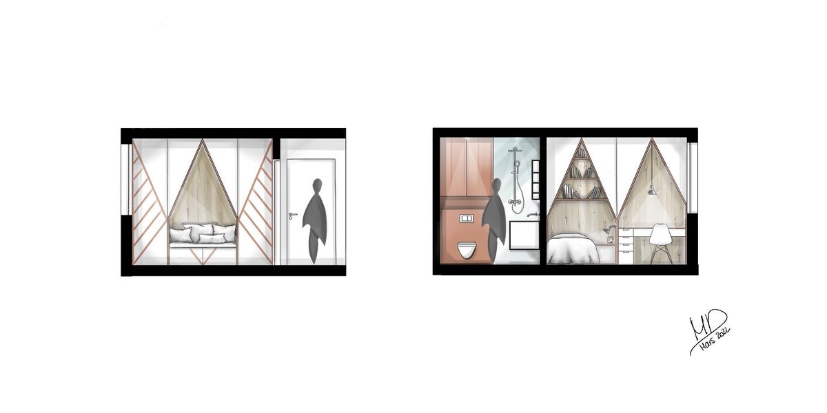 Lors de cette conception, j’ai aménagé l’intérieur d’un appartement destiné à un jeune couple avec un enfant. Mon travail d’inspiration s’articule autour du champ de blé avec comme élément phare l’épi. Les lignes graphiques de ce dernier m’ont inspirée pour l’élaboration du mobilier sur-mesure de l’habitation.
